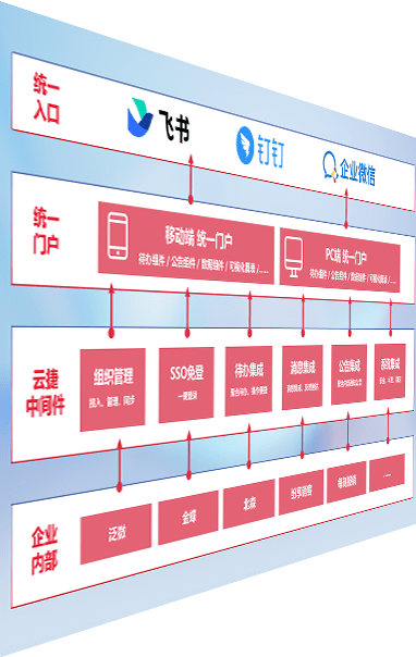 对协作平台提供支持服务,,支持企业应用与协作平台对接,,包含组织同步、、消息集成、、待办集成等。。。。支持目前主流的协作平台:钉钉、、企微和飞书。。。。